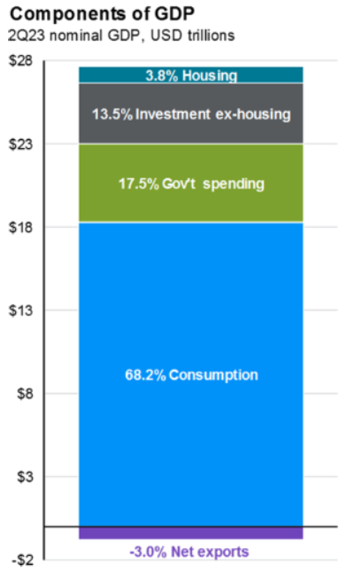 Consumer confidence was measured at 106.1, materially lower than the forecast of 116 and July’s 114.8. This indicator is crucial because 68.2% of US GDP(Q2 2023) comes from consumer spending.